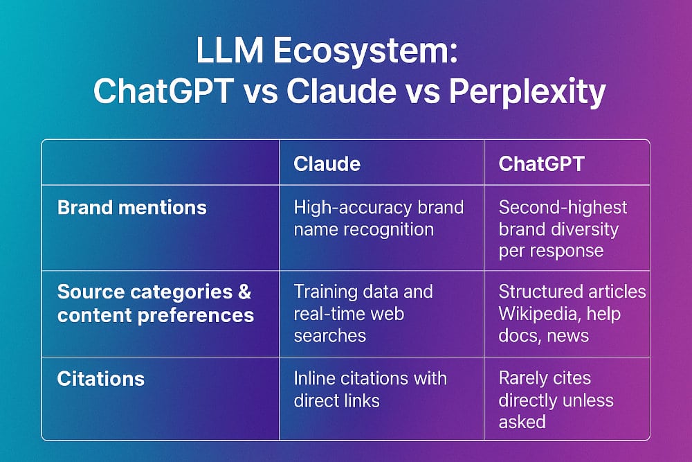 We’ll break down the differences between how each AI system decides what brands to surface into four parts: